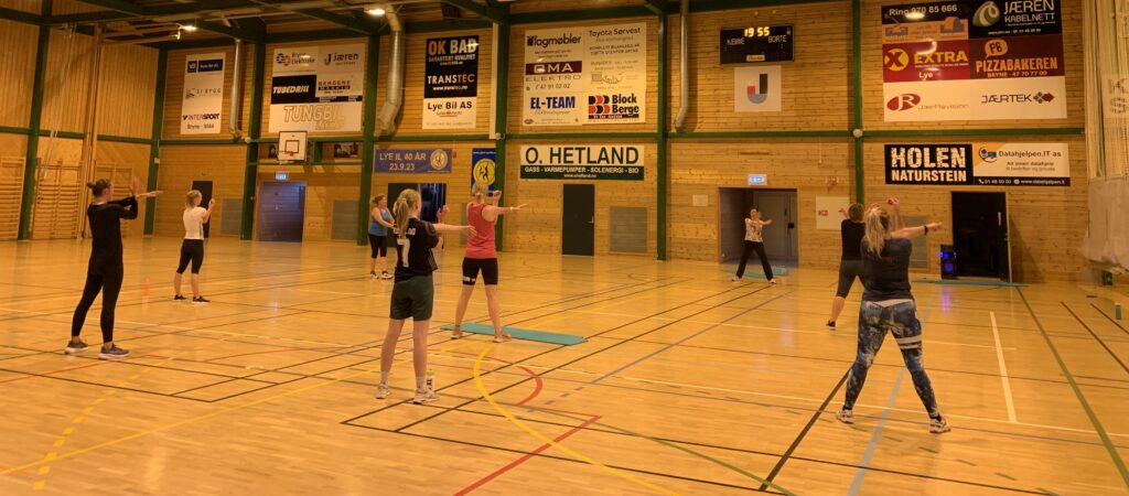 Gruppetreninga er eit lavterskel, rimelig, allsidig og sosialt tilbud, vi er kjempeheldige som har tilgang til her på Lye!